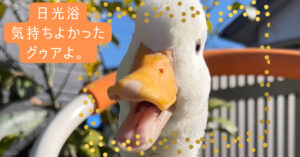 水鳥にとって水浴びはとっても大事なことグゥアけど、冬でもぺーちゃんはお水で水浴びしているの?の質問にお答えするグゥアよ!